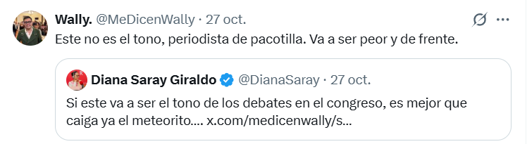 Wally, quien ha expresado abiertamente su apoyo al Gobierno nacional, respondió a diversas críticas con mensajes desobligantes y despectivos.